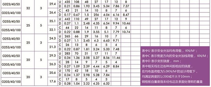 平面型扁鋼中心距為40常用鋼格柵板規(guī)格型號及安全荷載表